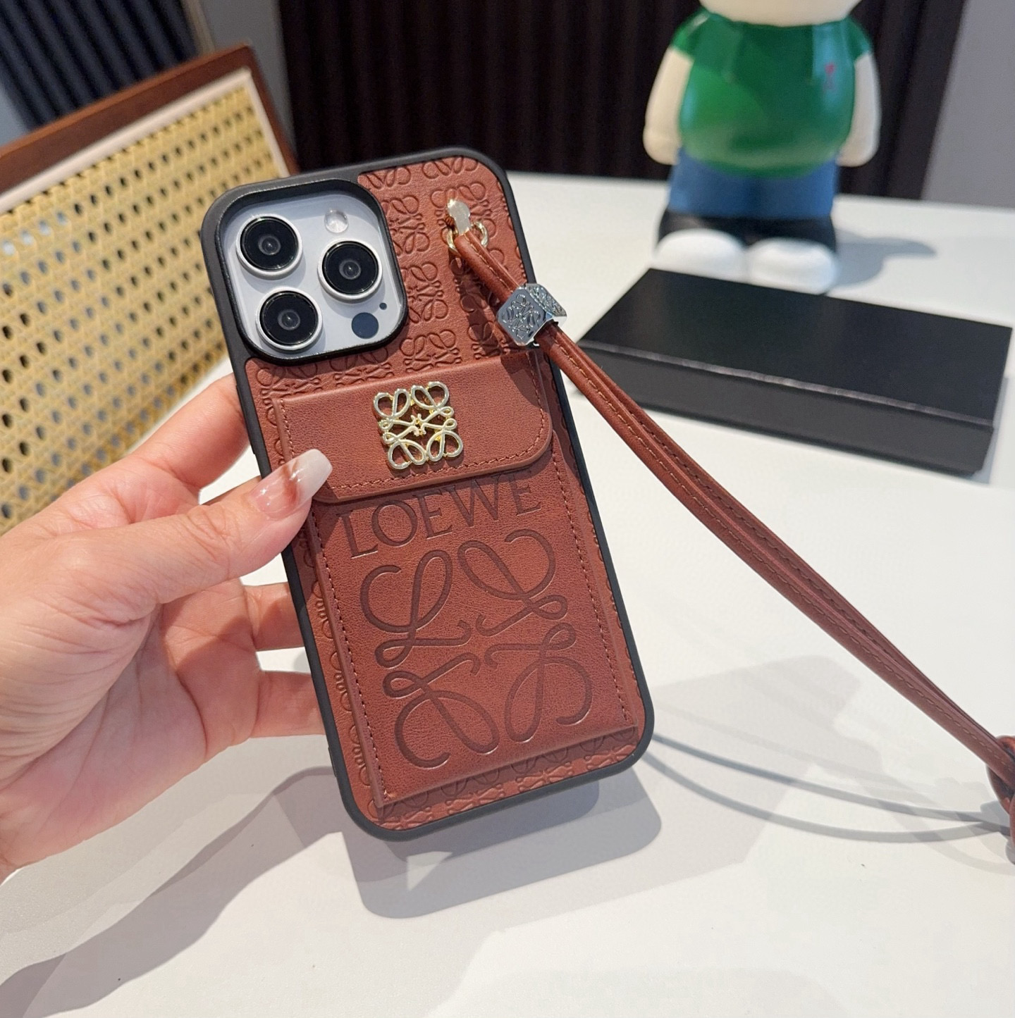💕罗意威.Loewe翻盖插卡手机壳 短款手腕绳 插卡手机壳