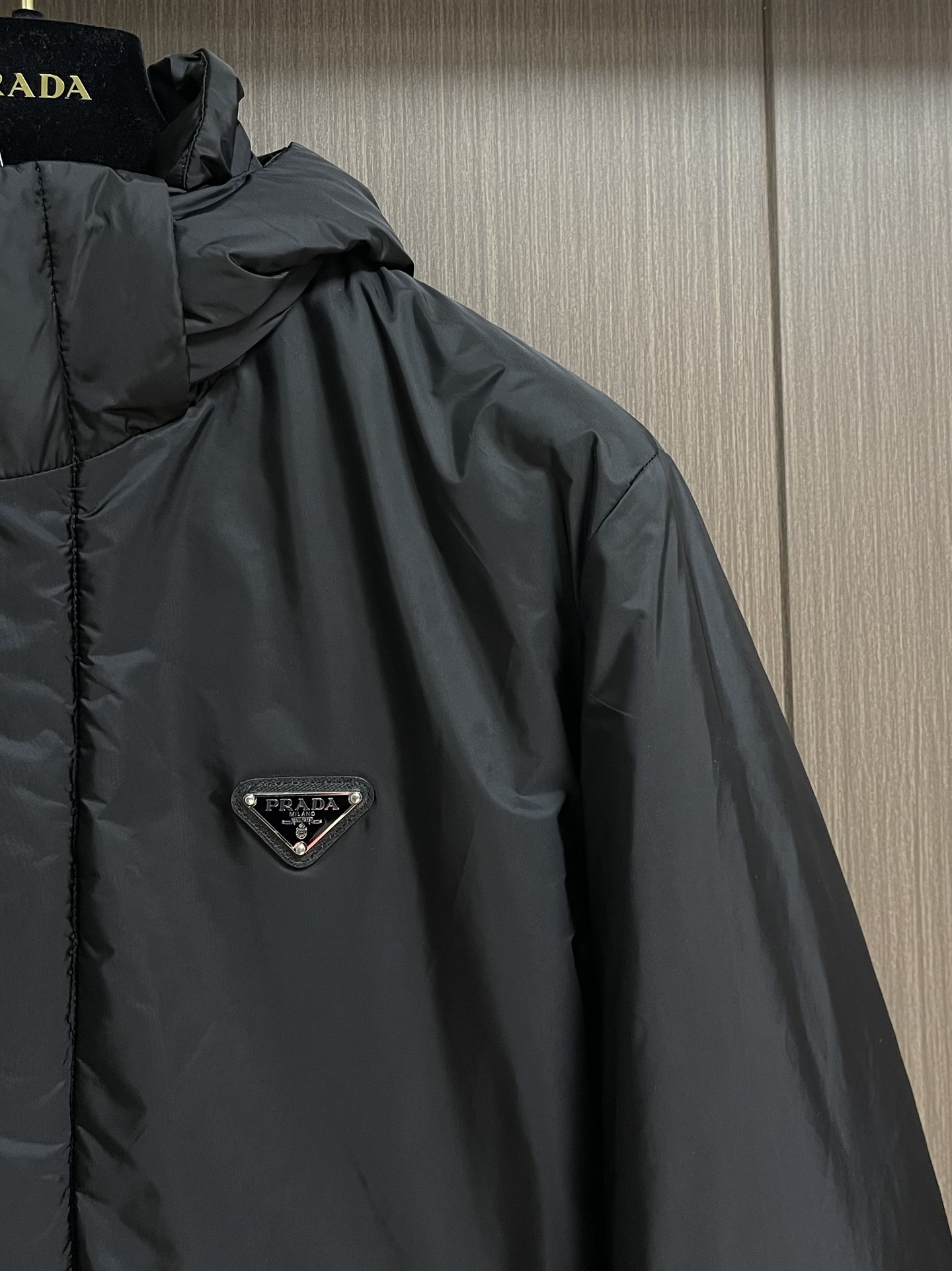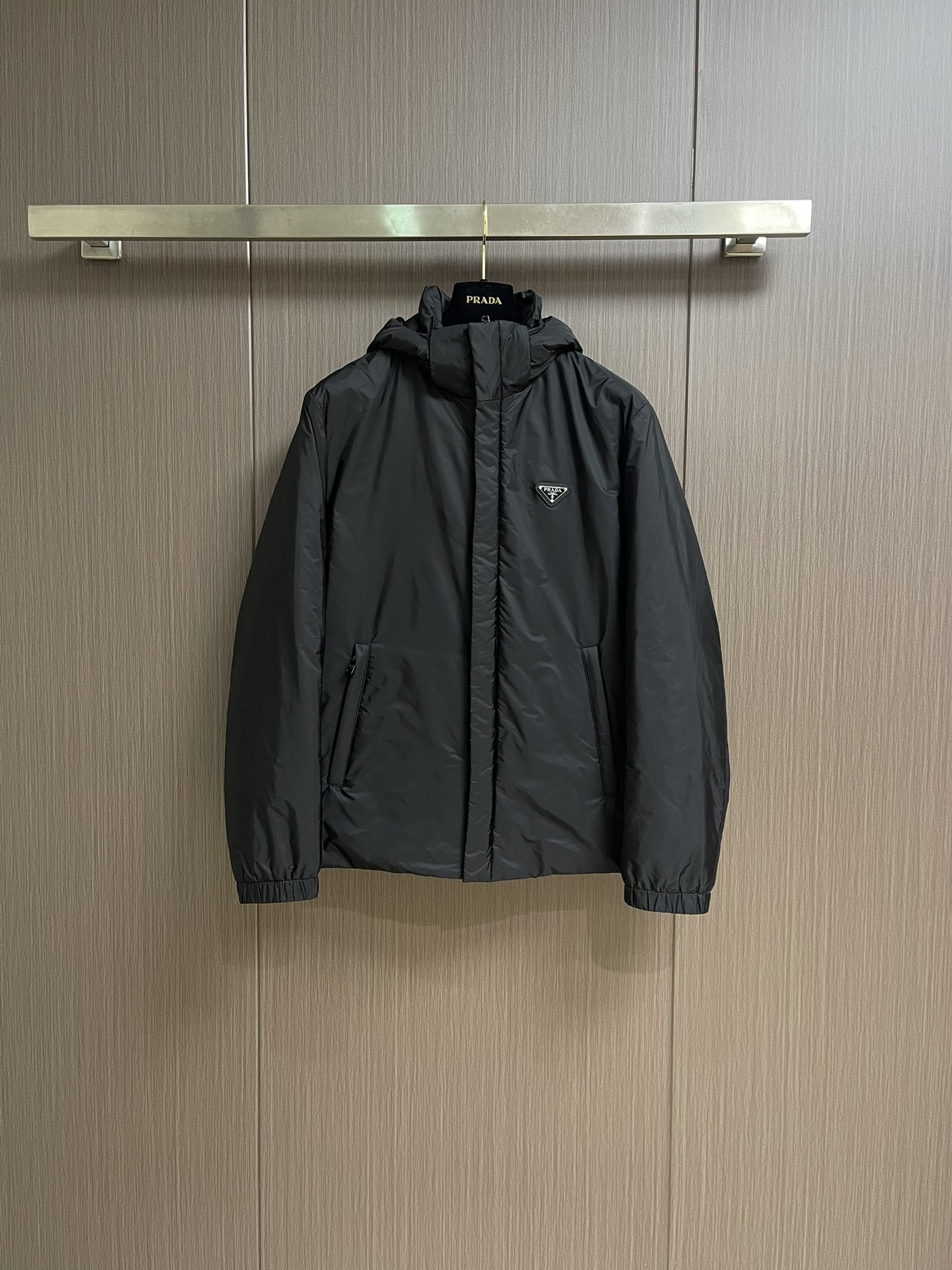 Prada 2025ss早秋新款连帽羽绒服外套,秋季爆款三角金属logo羽绒外套,90白鸭绒 穿上就是舒适自在特别保暖又显瘦的存在,慵懒而随性,结合干净简单的色系就特别耐看,适合日常穿着~倾情推出缀饰活力的运动单品!尺码:48-56.