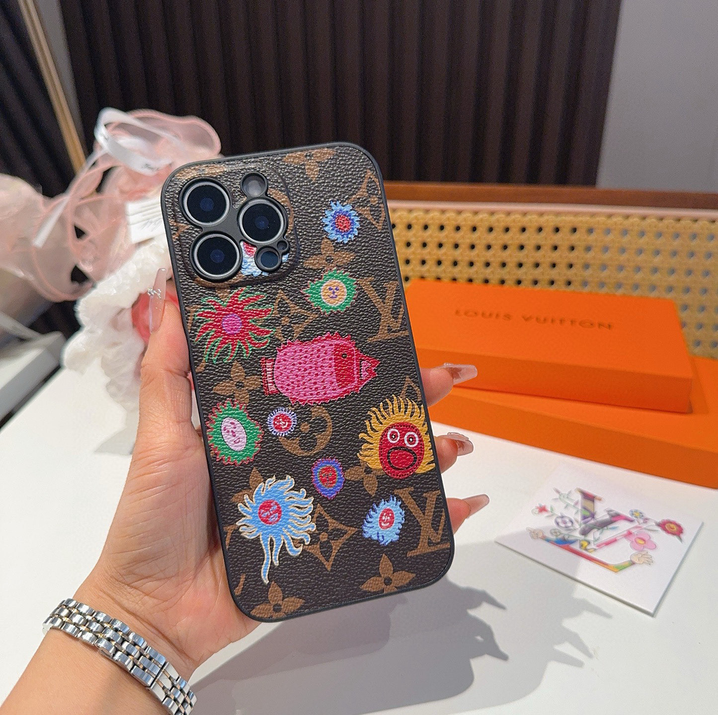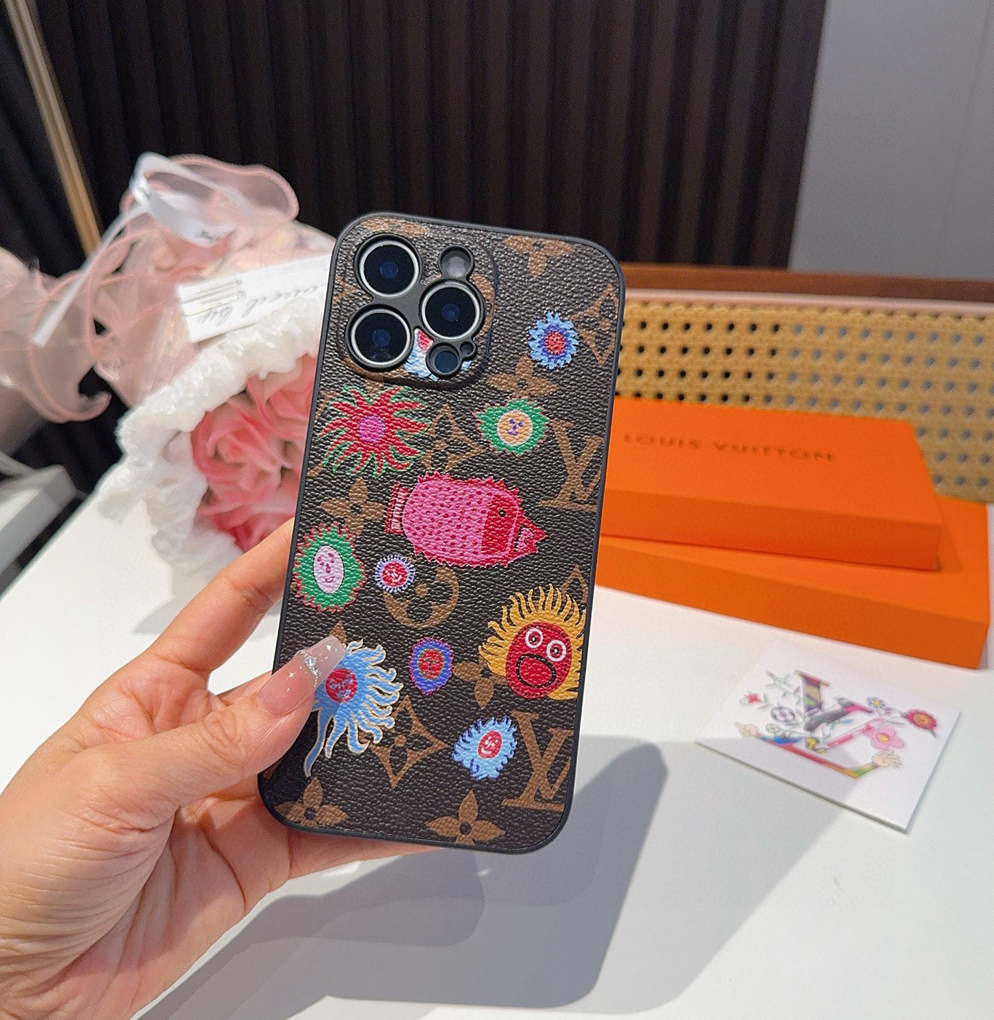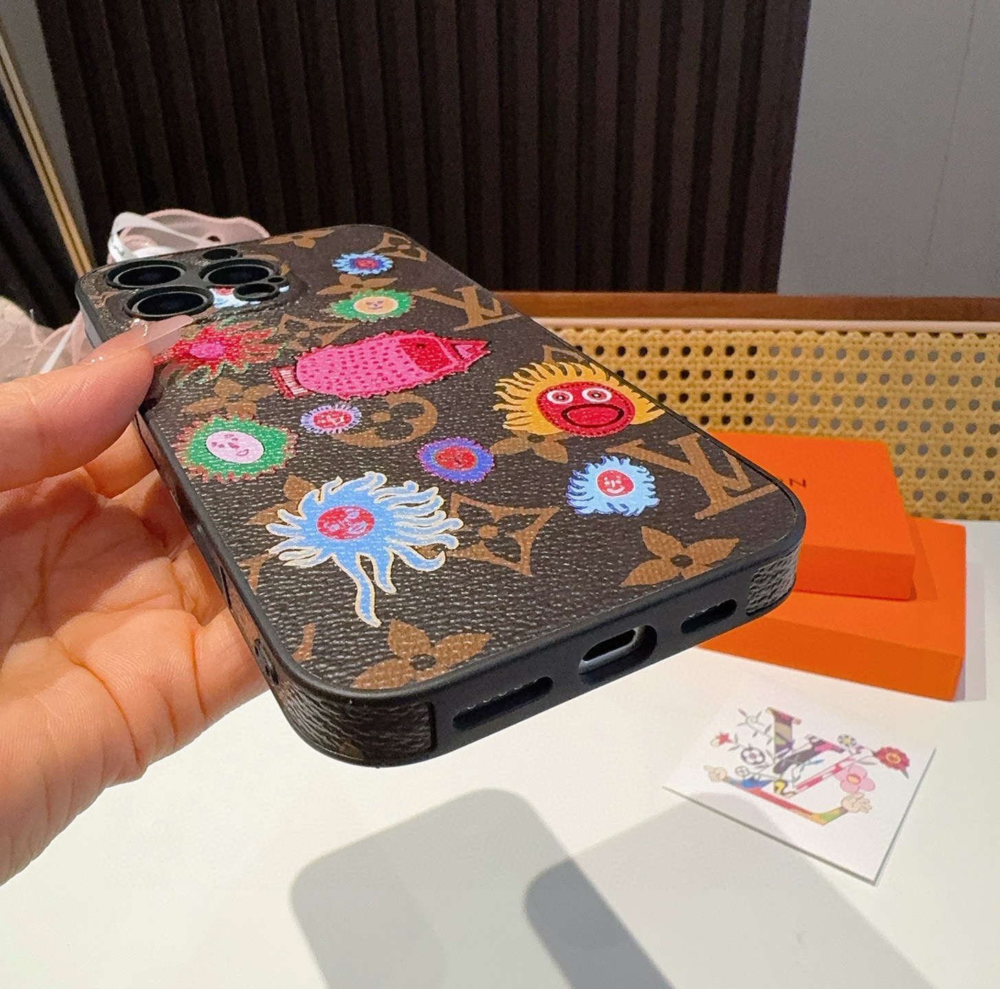 。Lv草见弥生系列 精孔全包手机壳 Lv全包围边皮质手机壳