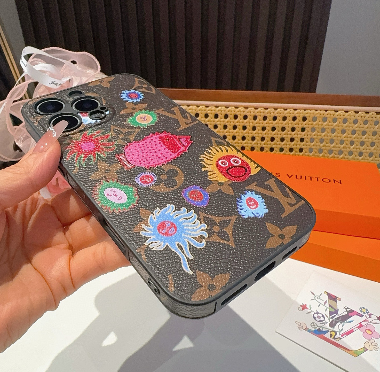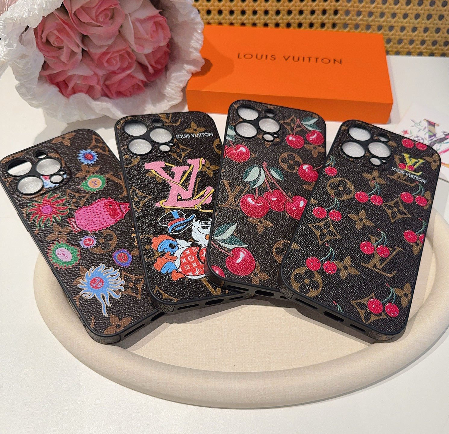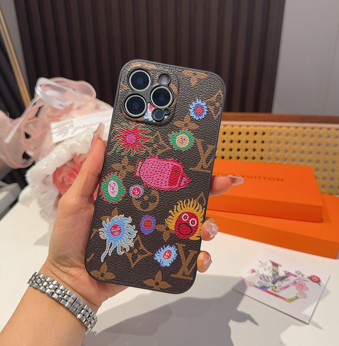 。Lv草见弥生系列 精孔全包手机壳 Lv全包围边皮质手机壳