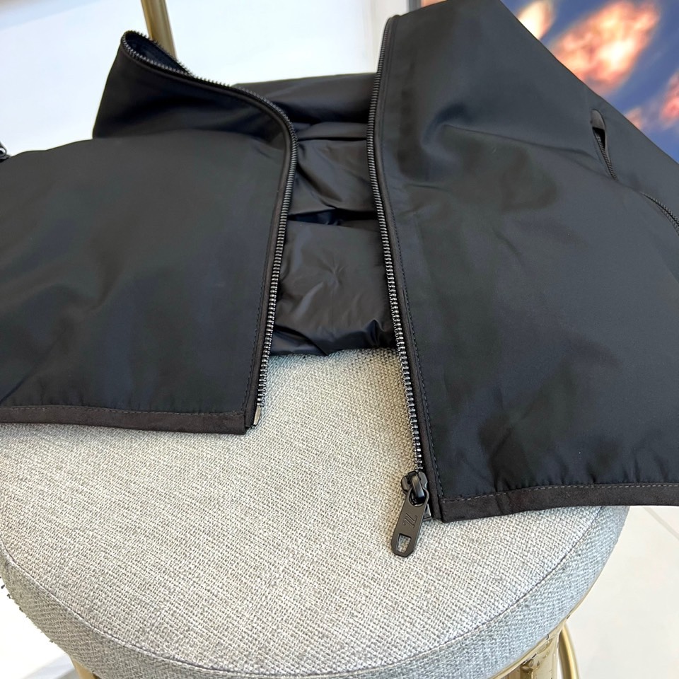 Zegna杰尼亚、2025秋冬新品男士羽绒服夹克,以经典高科技功能性面料打造,呈现细腻的微光泽质感与卓越的防风性能。立领设计搭配顺滑金属拉链开合,左袖上方饰有品牌标志性方形徽标,低调彰显身份。袖口与下摆采用同色系罗纹收口工艺,确保贴身舒适度与保暖性。剪裁精准利落,兼顾修身廓形与活动自由度,内衬选用深色系材质形成精致对比。